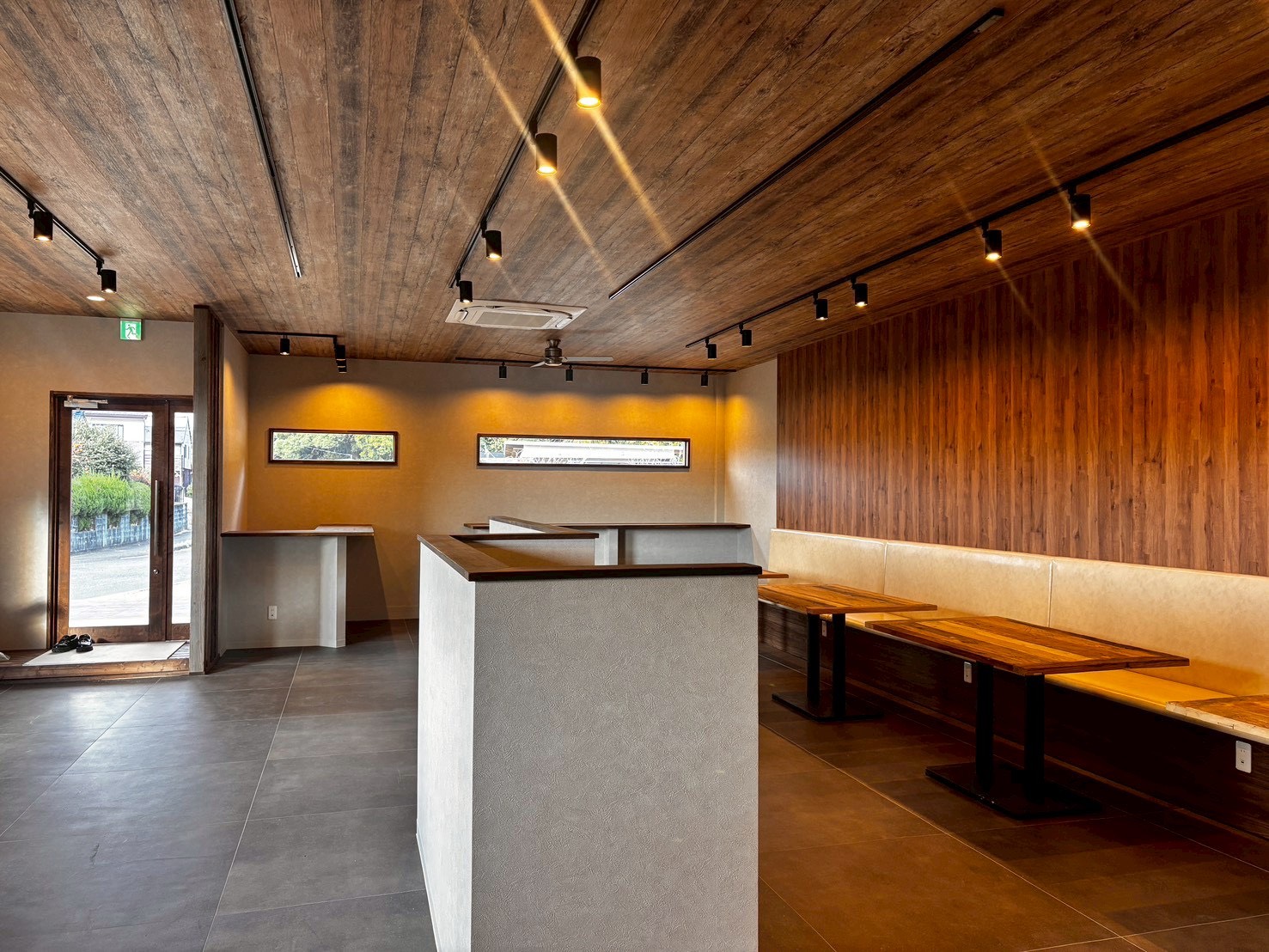 上質なこの質感と落ち着いた照明で、品のあるベーカリー空間をデザイン。