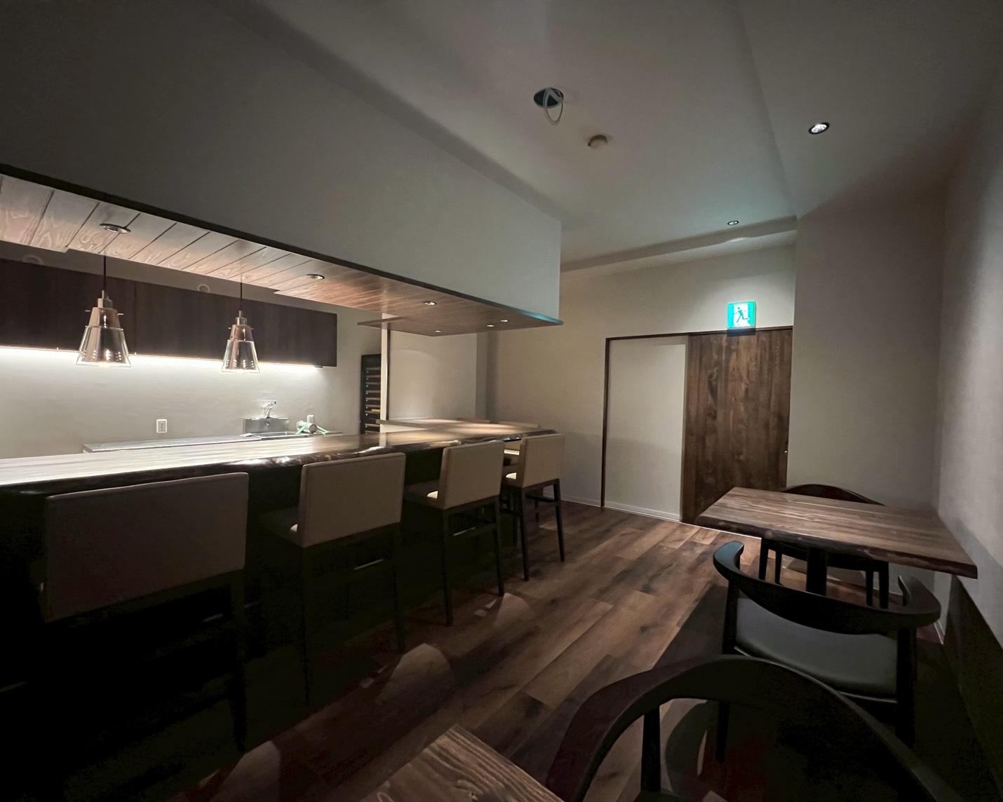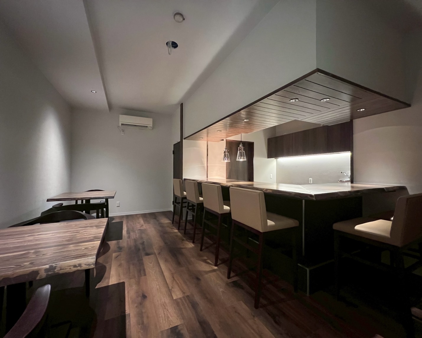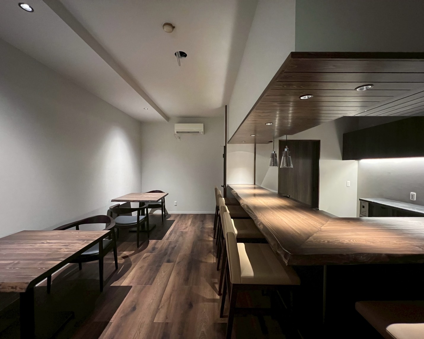 g râce à… 様 業種 飲食店 エリア 名古屋市西区 愛知県名古屋市西区幅下1-9-1シャトル浅間 1F 落ち着いた木の質感と柔らかな照明で、フレンチの品格と温かさが感じられる空間を設計デザイン。 カウンターは料理が引き立つよう、素材と光のバランスを調整。 大切な時間をゆっくり味わえる、上質で心地よい店内です。