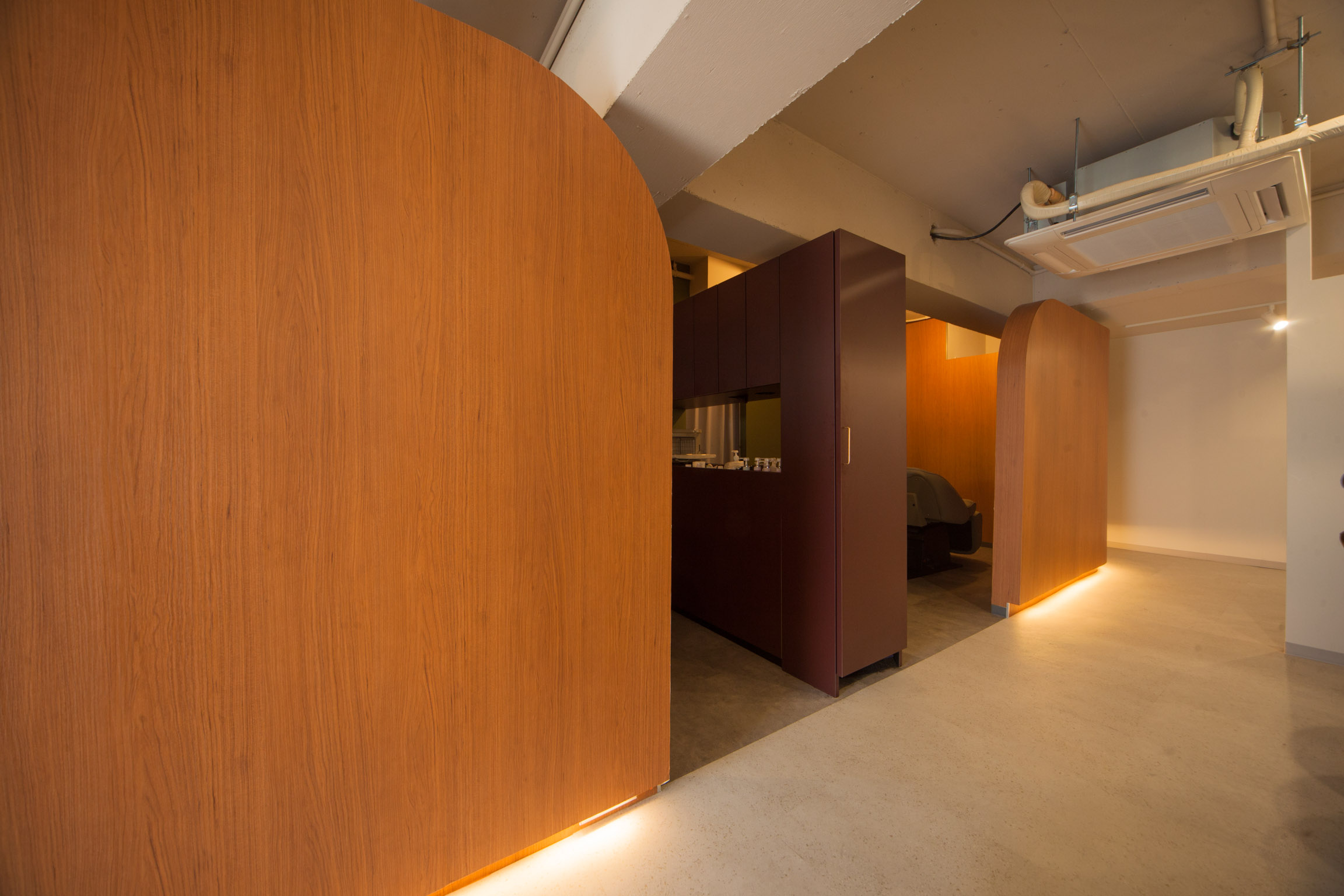tokione様 業種 美容院 エリア 愛知県天白区 愛知県名古屋市天白区 やわらかな色彩と曲線を取り入れ、抜け感のある軽やかな空間を設計デザイン。 タイルやミラー、木の質感をバランスよく組み合わせ、シンプルながらも印象に残る仕上がりに。 日常から少し離れて、心地よく過ごせる落ち着いた時間を演出しています。